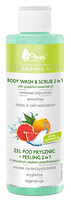 AVA Laboratorium - Attīroša līnija ķermeņa mazgāšanas līdzeklis un skrubis 2 vienā ar greipfrūtu ēterisko eļļu 200ml