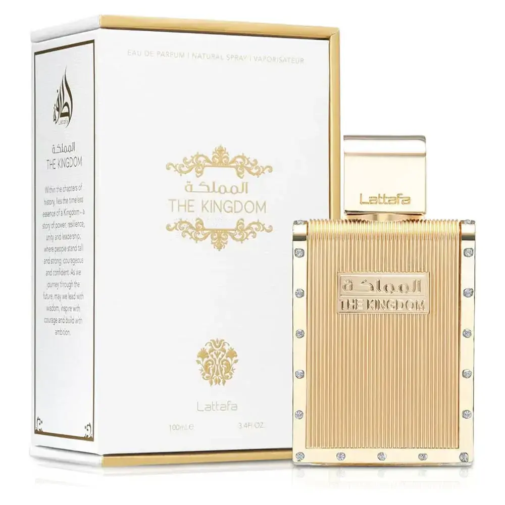 The Kingdom by Lattafa is a men’s eau de parfum with a bold oriental aromatic character The fragrance opens fresh and confident creating a strong first impression In the heart the composition becomes deeper and warmer revealing noble tobacco and sweet nuances The scent finishes with a rich resinous base forming a long lasting and expressive trail The Kingdom is designed for men who value strength elegance and confidence