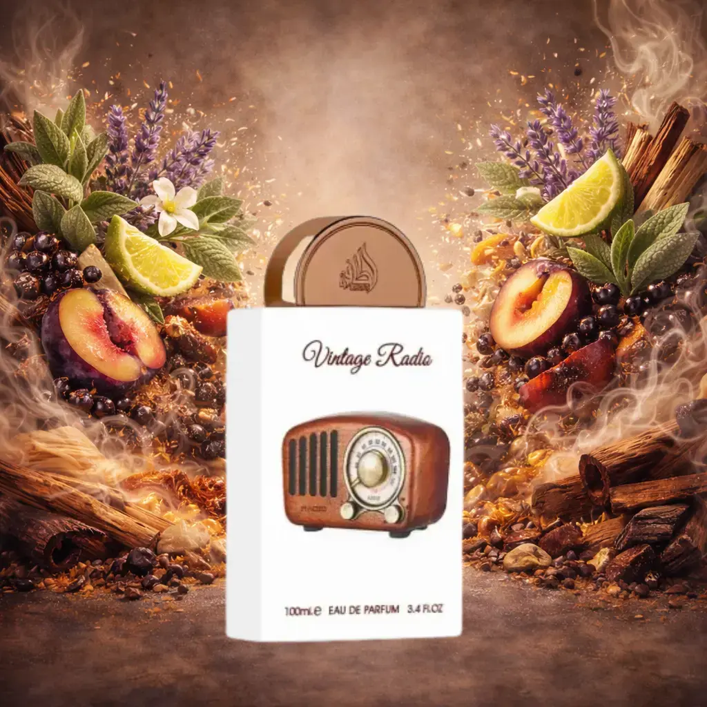 Lattafa Vintage Radio — ностальгический унисекс-аромат с утончённым древесно-фруктовым звучанием, в котором свежие травяные аккорды плавно переходят в глубокую сливовую теплоту и стойкий удовый шлейф. Этот аромат — словно путешествие в эпоху старых радиоприёмников, где каждый звук пробуждает воспоминания и уют. В начале звучат чистые, свежие ноты лаванды, шалфея и бергамота, создавая ощущение прохладного утра, наполненного ароматом классики. В сердце раскрываются сочная слива, дымный пало санто и пряный чёрный перец — они придают композиции загадочность, характер и глубину, будто тихая мелодия, звучащая из прошлого. Завершает аромат тёплая база из сандала, уда и амбрового дерева, оставляя мягкий, стойкий и обволакивающий шлейф, идеальный для осенних дней, вечерних прогулок и повседневной элегантности.