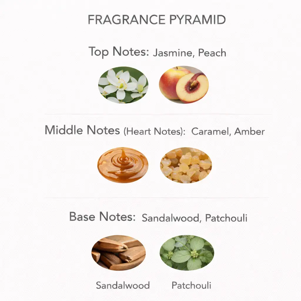 • Augšējās notis (Sākuma notis): jasmīns, persiks.
