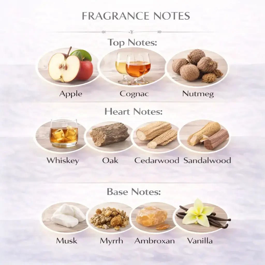 Heart: Whiskey, Oak, Cedarwood, Sandalwood