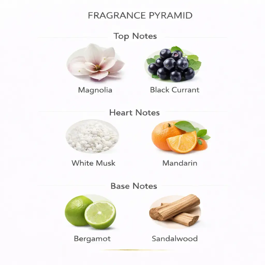 Верхние ноты: магнолия, чёрная смородина.